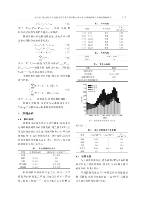 数 ,如 表 5 所 示 [14-15] 。 设 定 CEQ 交 易 价 格 为 的负荷分布情况如图 6 所示。