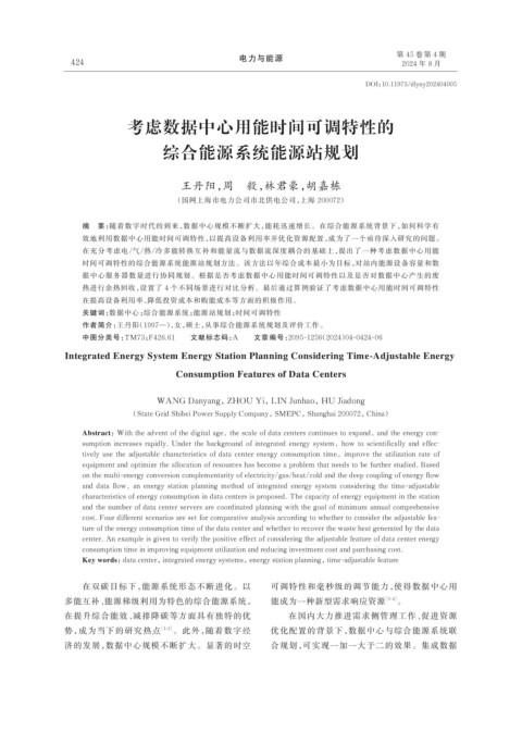 Key words:data center,integrated energy systems,energy station planning,time-adjustable feature