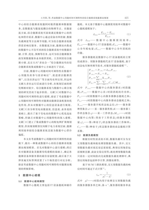 1.1 数据中心能耗模型 式中 μ t ——t 时段内用于处理交互型数据负载