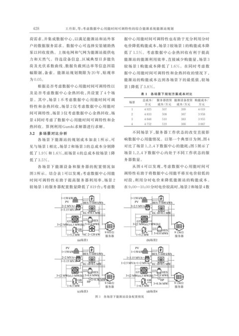 各场景下能源设备和服务器的配置情况如 从图 4 可以发现,考虑数据中心用能时间可