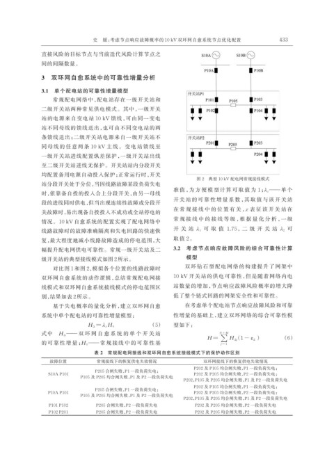史 媛:考虑节点响应故障概率的 10 kV 双环网自愈系统节点优化配置 433