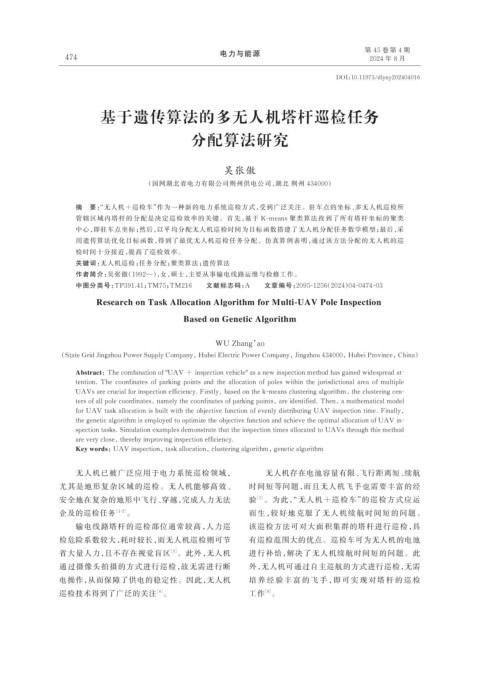关键词:无人机巡检;任务分配;聚类算法;遗传算法