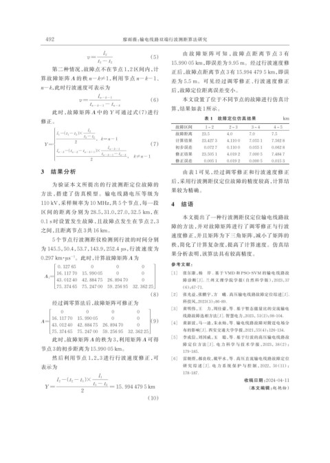 此时,故障矩阵 A 的秩为 3,利用矩阵 A 可得 [5] 李成信,刘国威,玉 聪,等 . 基于行波的高压输电线路故