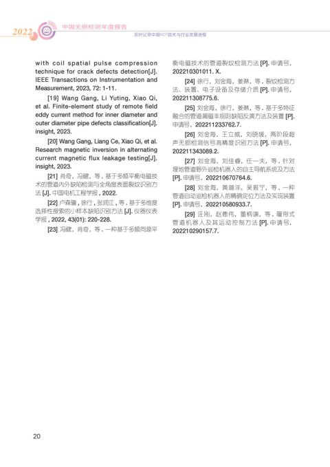 术的管道内外缺陷检测与全角度表面裂纹识别方 [28] 刘金海,黄瀚洋,吴振宁,等 . 一种