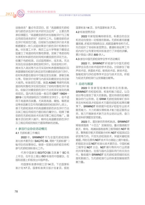 2022 年,SRIMNDT 作为全国无损检测标 研发等方向,开发先进检测技术,突破关键检测