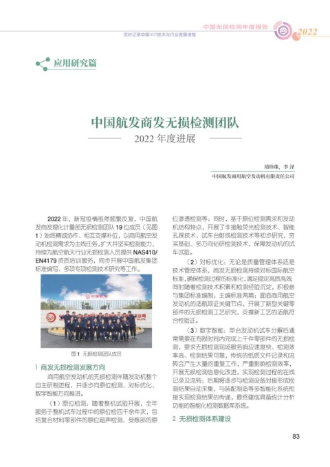 1)始终精诚协作、相互支撑补位,以商用航空发 孔探技术、试车台射线检测技术等初步研究,夯