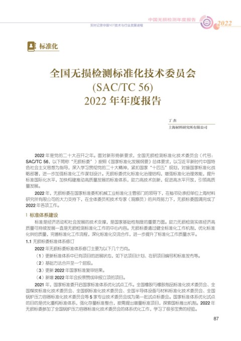 2022 年,无损标 在国家标准 和机械工业标准化主管部门的领导下,在秘书处承担单位上海材料