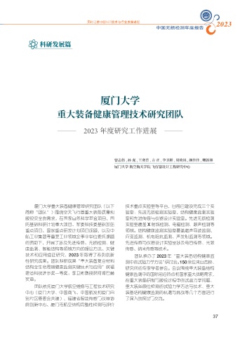 技术和应用验证研究,2023 年取得了系列创新 团队承办了 2023 年“重大装备结构健康监
