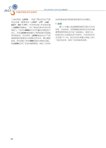 度和稳定性。研究表明,LSTM 模型在进行气路 检测应用以及装备系统开发研究。开发的相关技