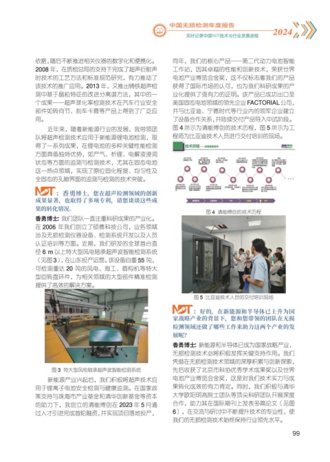 队将超声检测技术应用于新能源锂电池检测,取 程师为比亚迪技术人员进行交付培训的现场。