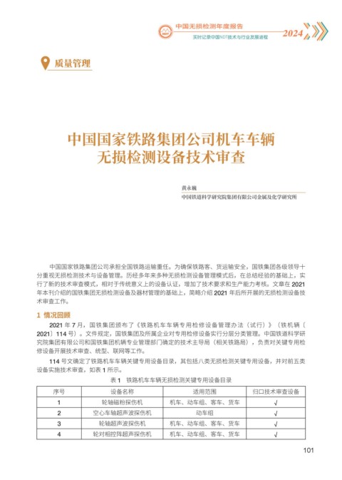 114 号文确定了铁路机车车辆关键专用设备目录,其包括八类无损检测关键专用设备,并对前五类