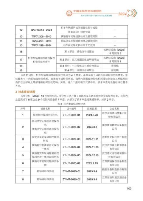 从金化科〔2023〕13 号文颁布后,金化所正式开展了铁路机车车辆无损检测设备技术审查。目前为