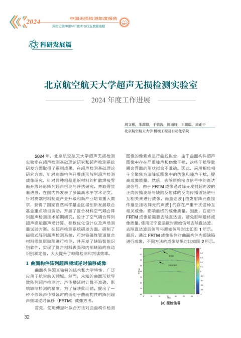 研究方面,针对曲面构件开展线形阵列超声检测 干全聚焦方法降低图像中的伪像和噪声干扰,提