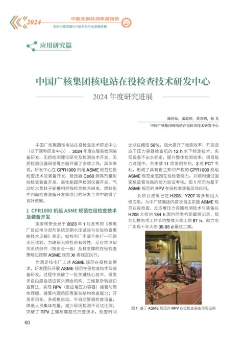 说,研发中心在 CPR1000 机组 ASME 规范在役 利,形成了具有自主知识产权的 CPR1000 机组