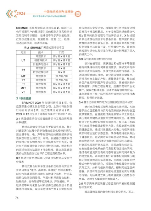 SRIMNDT 无损检测培训项目见表 2。培训中心 原位检测与安全评价。根据项目任务书年度计划
