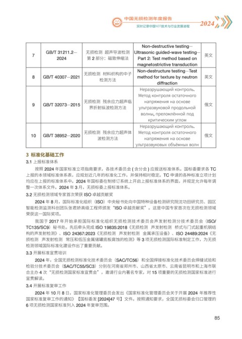 整一次体系文件。2024 年 3 月,无损标委上报标准体系。
