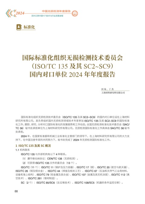 研究所有限公司。其负责组织国内无损检测领域技术专家参加 ISO/TC 135 及其 SC2~SC9 的国际标准