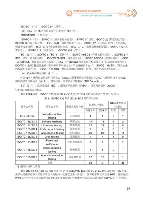 截至 2024 年底,ISO/TC 135 及其 SC 2~SC 9 共归口管理 ISO 国际标准 101 项,见表 1。