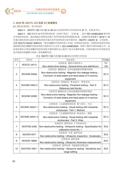 2024 年,ISO 新发布 9 项无损检测标准(含修订项目)(见表 3),其中 ISO 24489:2024 是中国