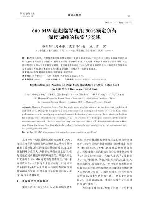 measureswere p ro p osed.The30%ratedloaddee pp eakre g ulationof660MWultra-su p ercriticalunitsinHua-