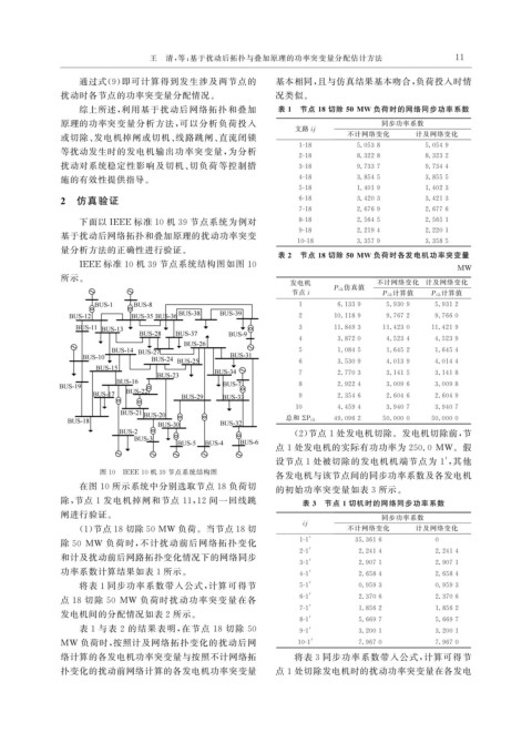 扑变化的扰动前网络计算的各发电机功率突变量 点 1 处切除发电机时的扰动功率突变量在各发电