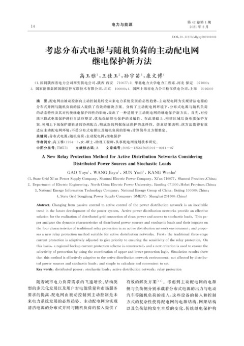 清洁电源的分布式并网与随机负荷的接入提供了 以及负荷结构发生本质的变化, 传统继电保护构