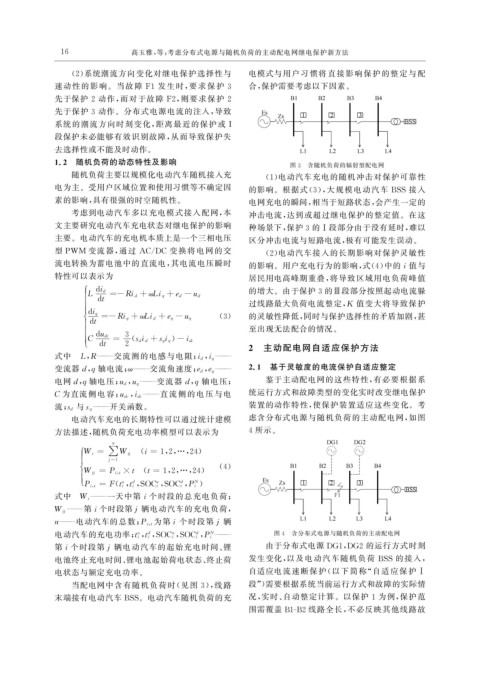 末端接有电动汽车 BSS 。电动汽车随机负荷的充 况, 实时、 自动整定计算。以保护 1 为例, 保护范
