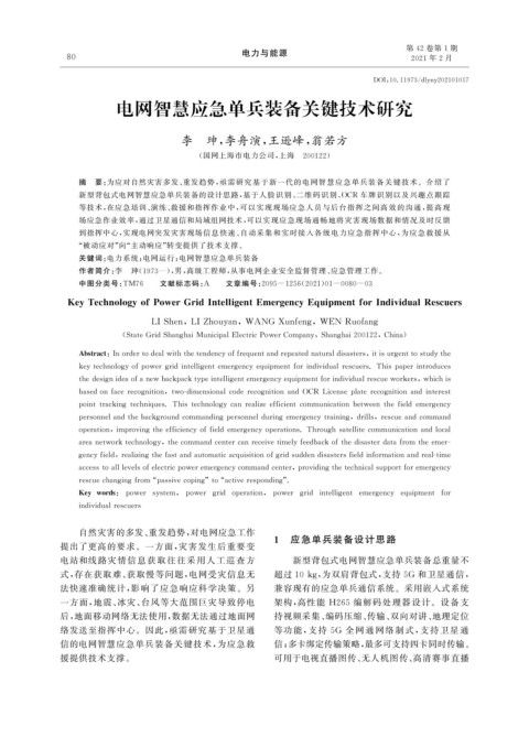 关键词: 电力系统; 电网运行; 电网智慧应急单兵装备