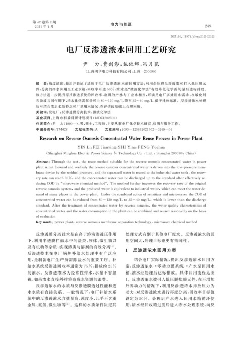 ResearchonReverseOsmosisConcentratedWaterReuseProcessinPowerPlant