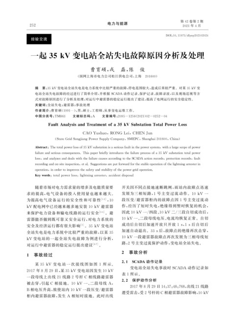FaultAnal y sisandTreatmentofa35kVSubstationTotalPowerLoss