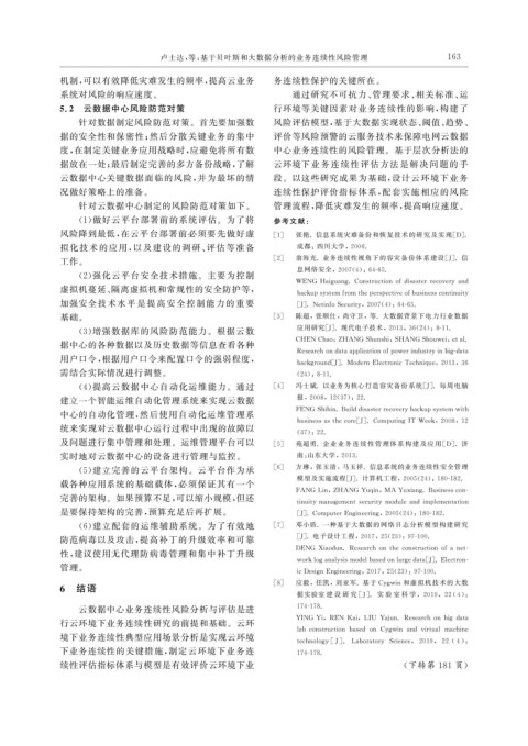 ( 5 ) 建立完善的云平台架构。云平台作为承 [ 6 ] 方琳,张玉清,马玉祥 . 信息系统的业务连续性安全管理