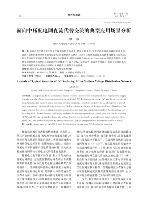 并且建设难度很大, 如果对原有的配电网进行升 为此, 本文模拟并搭建 3 个典型的传统交流