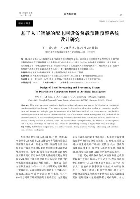 关键词: 配电网元件; 负载率预测; 重过载预警; 聚类和分类; 人工智能