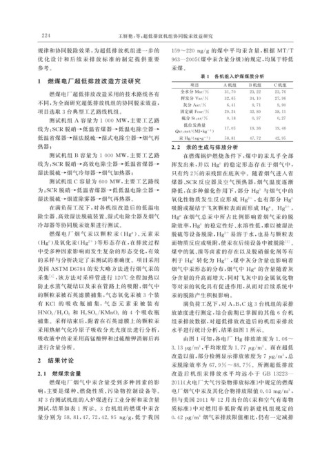 规律和协同脱除效果, 为超低排放机组进一步的 159~220n gg 的煤中平均汞含量, 根据 MT / T