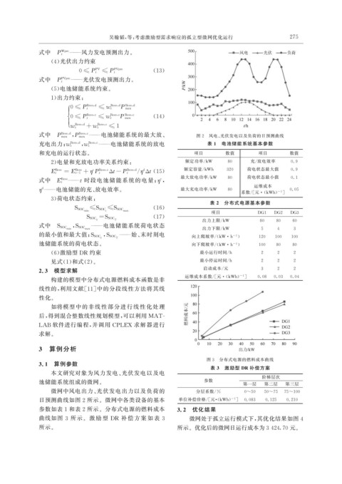 参数如表 1 和表 2 所示。分布式电源的燃料成本 3.2 优化结果