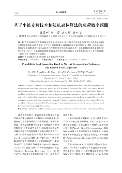 Ke ywords : p robabilisticloadforecastin g , q uantilere g ressionforest , wavelettransform , multista g ep rediction