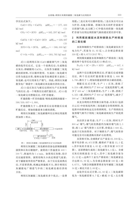 图 1 利用石灰捕捉二氧化碳循环反应与应用流程 按平均含铁 48.8% 计算, 精铁矿产量是 15.5 亿