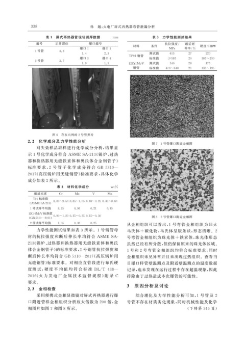 表 1 屏式再热器管现场测厚数据 mm 表 3 力学性能测试结果