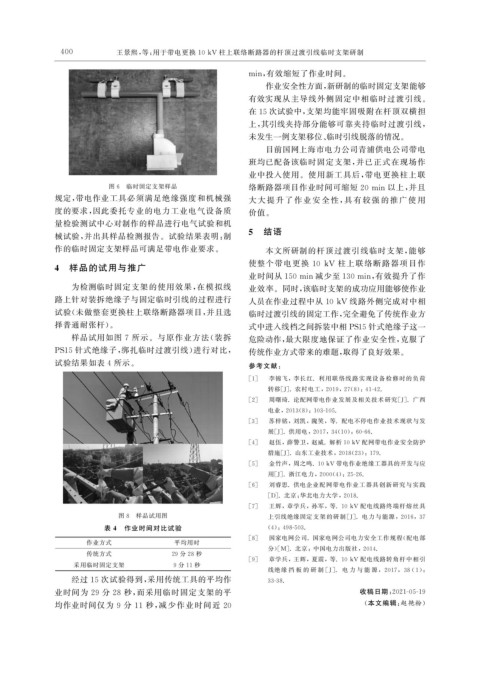 PS15针式绝缘子, 绑扎临时过渡引线) 进行对比, 传统作业方式带来的难题, 取得了良好效果。