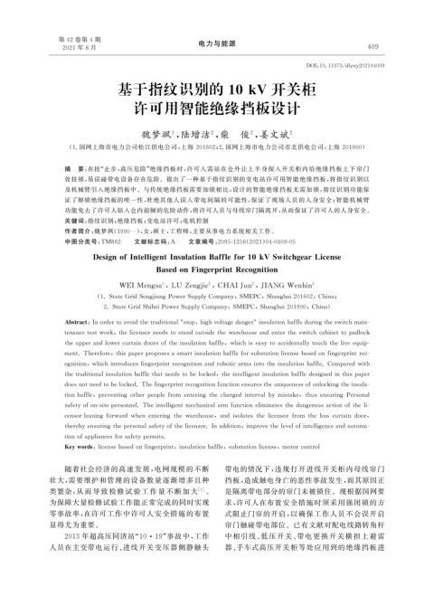关键词: 指纹识别; 绝缘挡板; 变电站许可; 电机控制