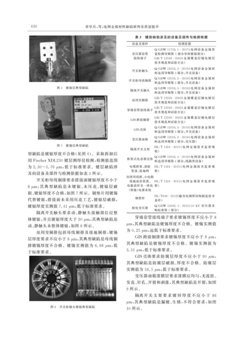 表 3 镀层缺陷涉及的设备及部件与检测依据