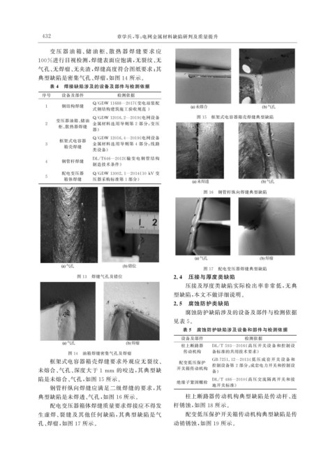 表 4 焊接缺陷涉及的设备及部件与检测依据
