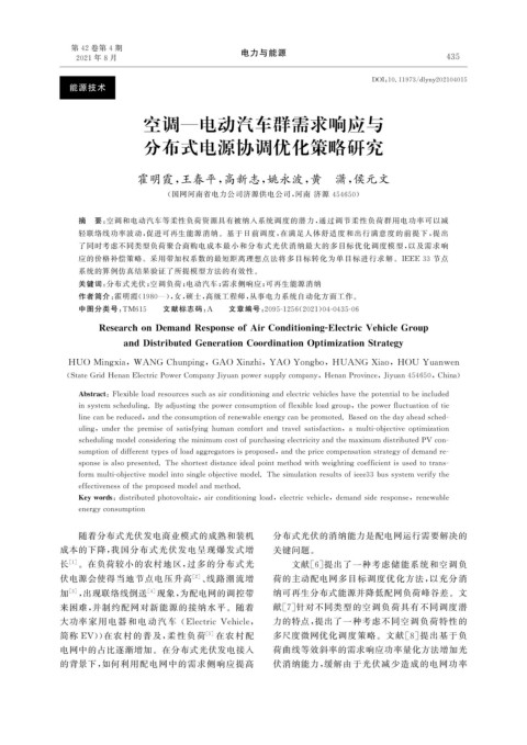 关键词: 分布式光伏; 空调负荷; 电动汽车; 需求侧响应; 可再生能源消纳