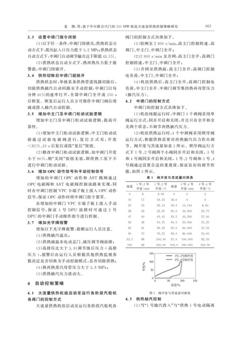 增加的 中调门 OPC 动作 和 AST 跳 闸 通 过 表 1 阀开度与其流量对照表