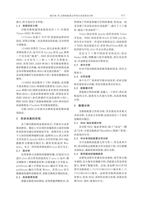谢大海, 等: 交换机配置文件的自动采集及分析 6 3