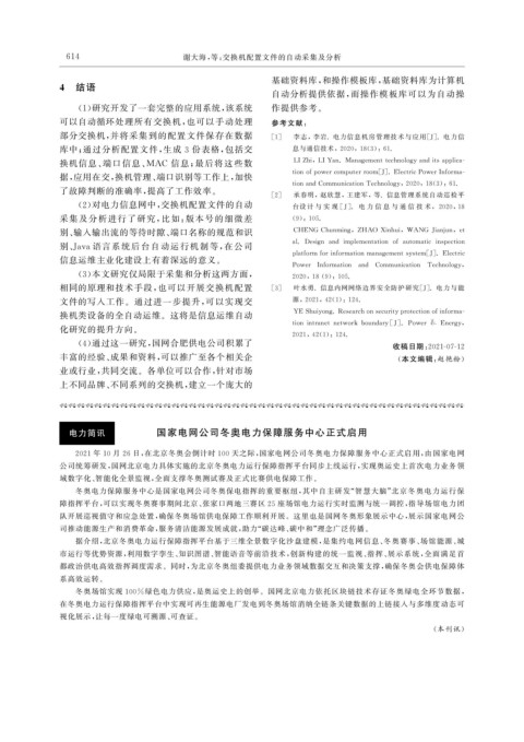 ( 2 ) 对电力信息网中, 交换机配置文件的自动 台设 计 与 实 现 [ J ] . 电 力 信 息 与 通 信 技 术, 2020 , 18