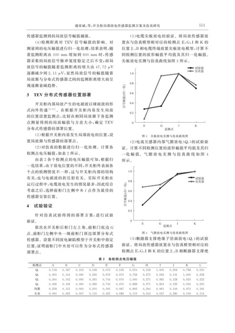 位置, 证明前柜门中央处可以作为分布式传感器 验证。将局放传感器放置在与仿真模型相对应的