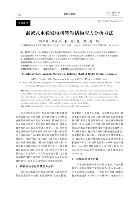 析转轴的应力状态是十分必要的。目前, 对水轮 扭矩, 再通过转轴轮毂将扭矩传递给发电机转子,