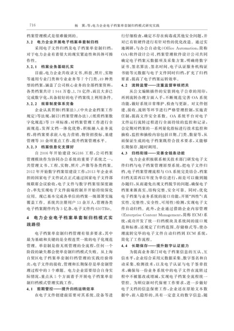 7 1 6 杨 翼, 等: 电力企业电子档案单套制归档模式研究实践