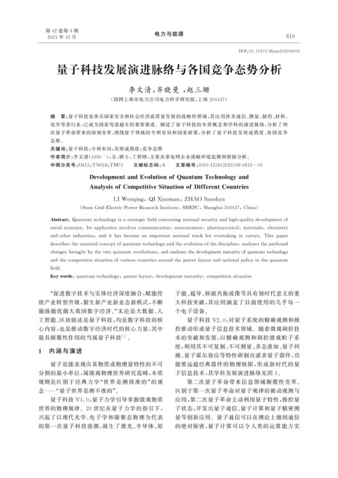化学等多行业, 已成为国家弯道超车的重要赛道。阐述了量子科技的本质概念和学科的演进脉络, 分析了两